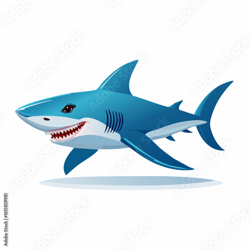 Cartoon shark illustration with fierce expression and striking blue coloration