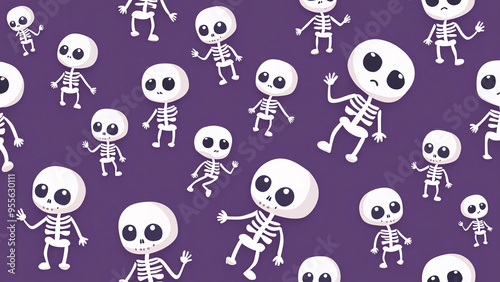 Cartoon Skeletons Pattern on Purple Background