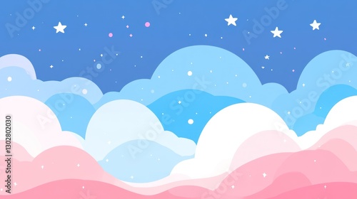 Cartoon Sky with Clouds and Stars, Dreamy Night Illustration