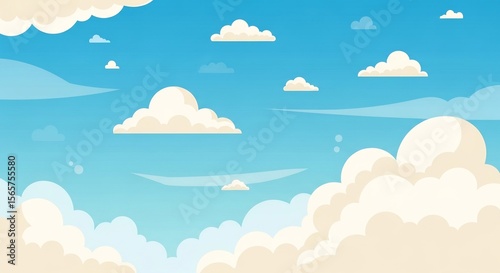 Cartoon Sky with Fluffy Clouds, Light Blue Backdrop, Vector Illustration