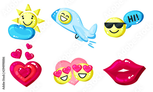 Cartoon Smiling Sticker Set. Flat Isolated Symbols