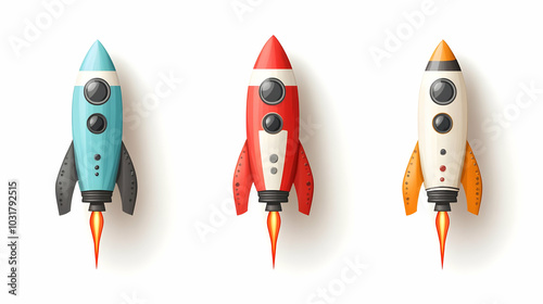 Cartoon Space Rockets Set.