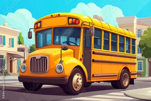 Cartoon Style Bright Yellow School Bus for Educational Illustrations