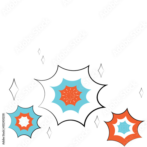 Cartoon style fireworks. Decorated with fireworks and sparkling stars to celebrate children's day.