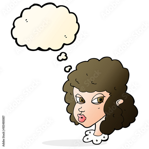 cartoon suspicious woman with thought bubble