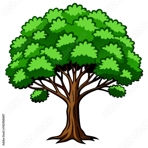 Cartoon Tree Illustration With Green Leaves And Brown Trunk On White