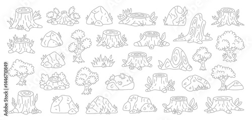 Cartoon Tree Stumps Rocks and Trees Graphic Design Elements