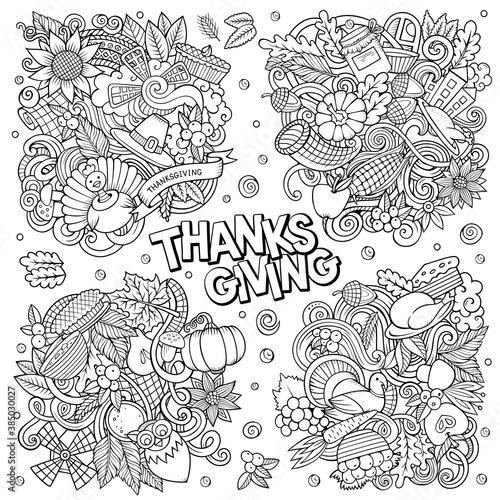 Cartoon vector doodles Happy Thanksgiving Day illustration