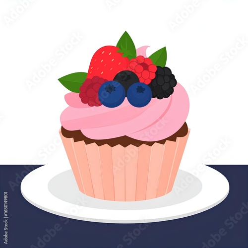 cartoon vector illustration of berries cupcake on white