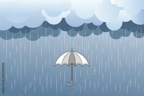 Cartoon vector illustration of umbrella with rain, pastel design suitable for children’s educational materials, nursery posters, and baby graphics