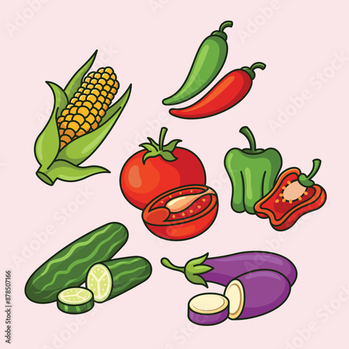 Cartoon Vegetable Vector Design. Vegetables food cute art illustration