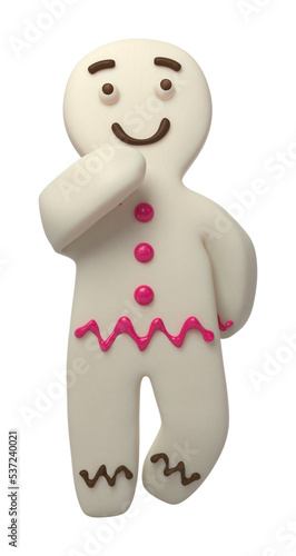 Cartoon white chocolate gingerbread man smiling, 3d illustration