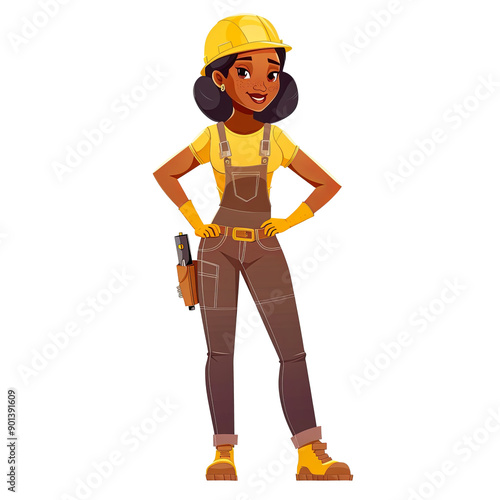 Cartoon woman builder with yellow helmet