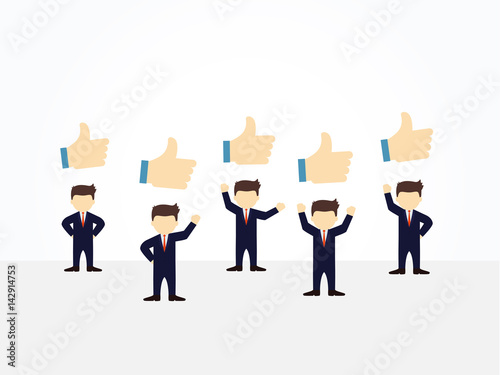 Cartoon working little people with like signs. Vector illustration for business design and infographic.