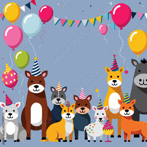 Cartoon-Animals-Celebrating-Birthday-Party-Illustration-Festive-Balloons-Colorful-Party-Hats-Cute-Dogs-Celebration-Fun-Kids-Birthday-Themes-Celebratory-Event