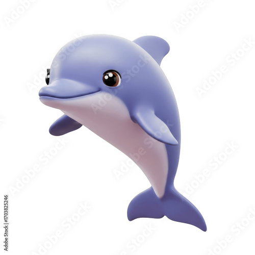 Cartoonish Dolphin with Playful Pose and Big Eyes in a Transparent Background