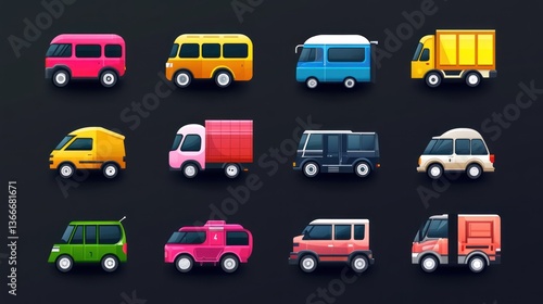 Cartoonish Illustrations Displaying Different Colorful Automotive Vehicles Designs