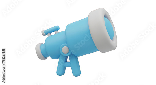 Cartoonish Light Blue Telescope with White Accents on a Stand.