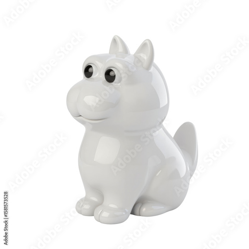 Cartoonish White Ceramic Dog Figurine Sitting Displayed in Minimalist Setting