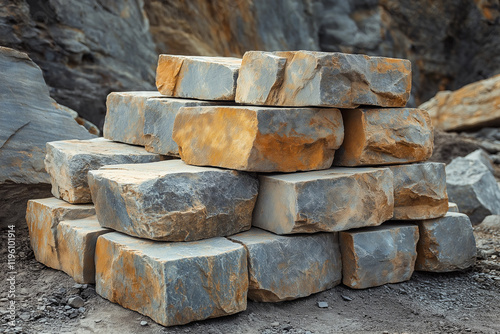 Carved Rock Slabs Stacked Neatly in Quarry: Stone Ready for Sculpting