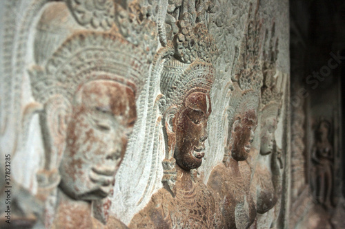 Carvings of devata goddess from the central tower of Angkor Wat, Angkor, Siem Reap, Cambodia, Asia