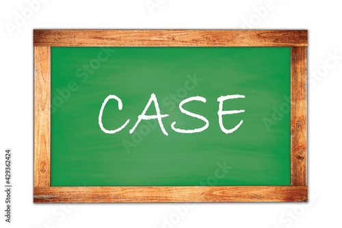 CASE text written on green school board.