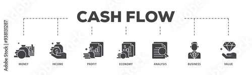 Cash flow icon infographic illustration concept with icon of money, income, profit, economy, analysis, business, and value icon png and easy to edit