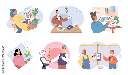 Cashless payment. Vector illustration. Wireless payment systems eliminate need for swiping or inserting cards at payment terminals Many countries are working towards creating cashless society
