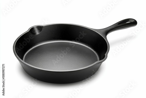 Cast iron skillet on white background.