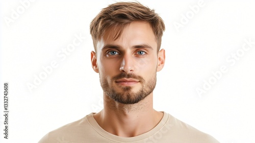 Casual young man with stylish hair, neutral shirt, relaxed expression, ideal for personal branding or casual content creation.