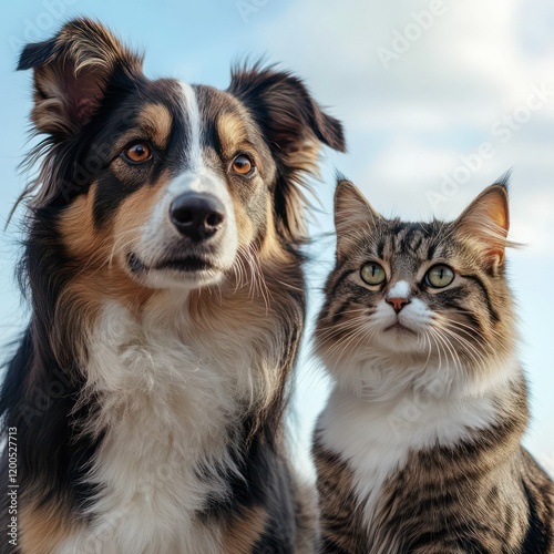 cat and dog together, showcasing their expressive faces, distinct fur patterns, and a bond of companionship