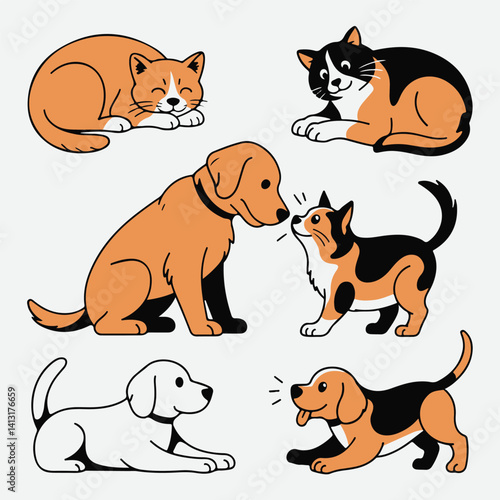 Cat and Dog Vector Sticker Set in Silhouette Style