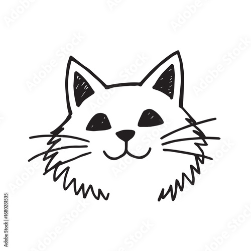 Cat Doodle Black and White Illustration Vector Image Cute Kitten Sketch Line Art Drawing Silhouette