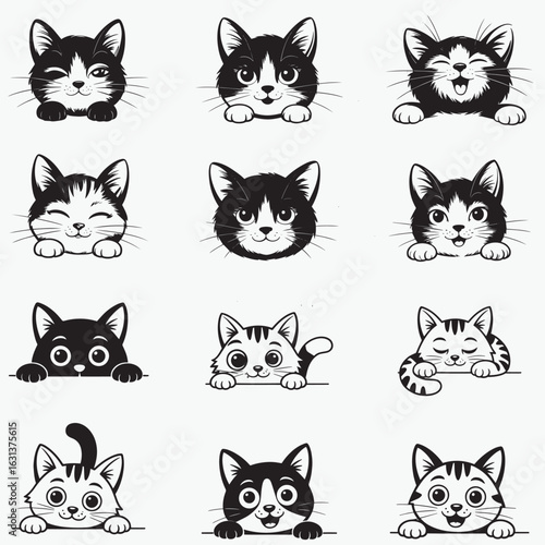 Cat Face SVG, Peeking Cat SVG Bundle, Cute Kitty Silhouettes, Cat Head Clipart, Cricut Cut Files