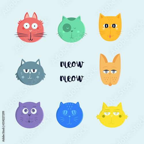 cat faces collection flat design