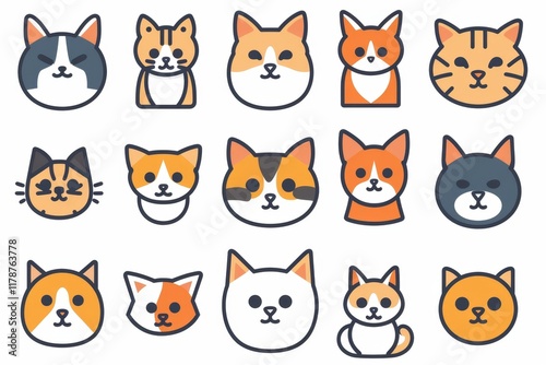 Cat flat icon, minimal kitten symbol, kitty sign isolated, pet pictogram, cat set on white