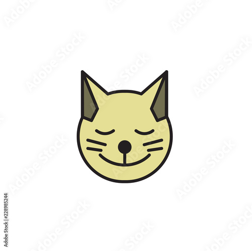 Cat head round icon. Kitten smiling face. Cartoon design icon. Colorful flat vector illustration. Isolated on white background.