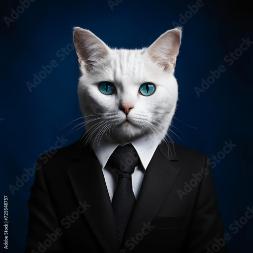 cat in a jacket, business image, businessman, lifestyle. artificial intelligence generator, AI, neural network image. background for the design.