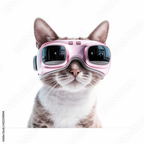 cat in virtual glasses with augmented reality. on a white background.Generative AI