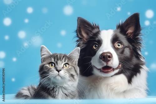 cat kitten and a Border Collie dog. Generative AI