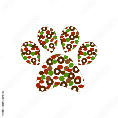 Cat paw icon with dry pet food pattern. On white background. Vector.