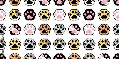 cat paw seamless pattern dog footprint calico kitten vector pet puppy breed cartoon doodle repeat wallpaper tile background illustration design isolated