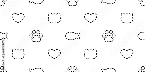 cat seamless pattern paw footprint valentine heart vector dog kitten head cartoon dash line scarf isolated repeat wallpaper tile background doodle illustration design