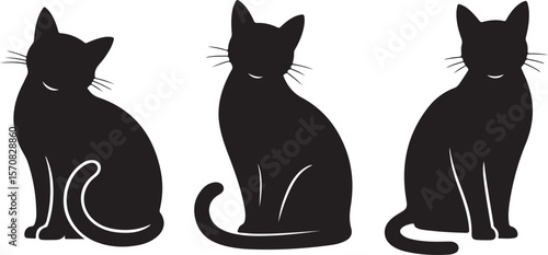 Cat Silhouette Vector Bundle Sitting & Sleeping Cat SVG Pet Cat Pose Clipart Set
