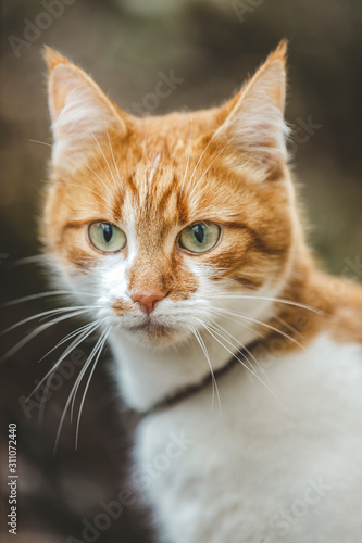 Cat that sees a threat is preparing for a jump, a cat's emotions close up. Shallow depth of the field