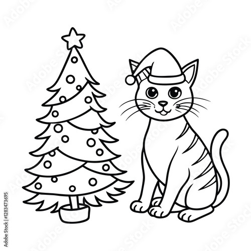 cat with christmas tree
