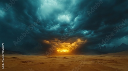 Catastrophic event unfolds in desert landscape dramatic sky view