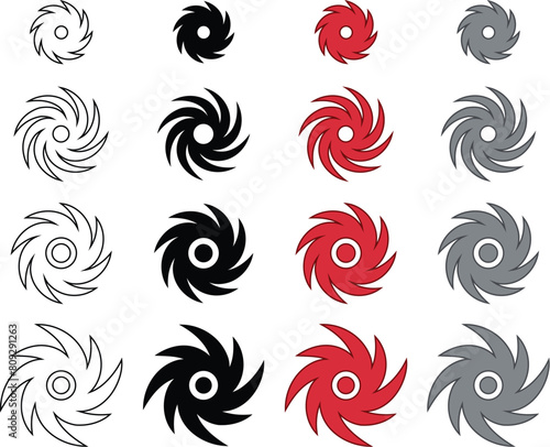 Category Hurricane Symbol Icon Clipart Set - Outline, Silhouette & Color
