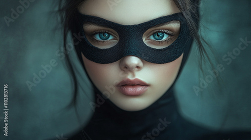 cat-girl wearing a seductive mask, blending elegance and allure with an enigmatic charm, emphasizing beauty and depth in a visually striking composition