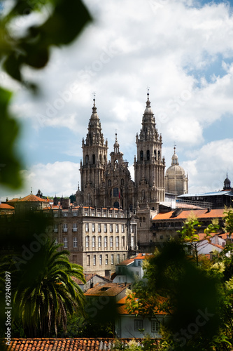Cathedral of Santiago de Compostela in a sunny day, the end of the way of saint james for many pilgrims, Galicia, Spain